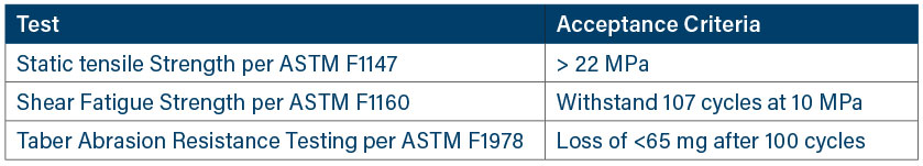 Insufficient mechanical testing is also common to bring up deficiencies for additively manufactured devices during a pre-market review. FDA’s current policy is to treat any additively manufactured lattice or porous structure on the bone contacting surfaces—which have the same intended promotion of osteointegration as a coating—as a device coating. FDA’s draft guidance Characterization of Metallic Coatings and/or Calcium Phosphate Coatings on Orthopedic Devices Draft Guidance for Industry and Food and Drug Administration Staff includes recommended non-clinical bench testing to characterize the device’s lattice or porous structure, which include chemical analysis and microstructure characterization. The current recommendation for mechanical testing of metallic coating coupons, which the FDA may require for a printed lattice coupon, is listed in Table 1.