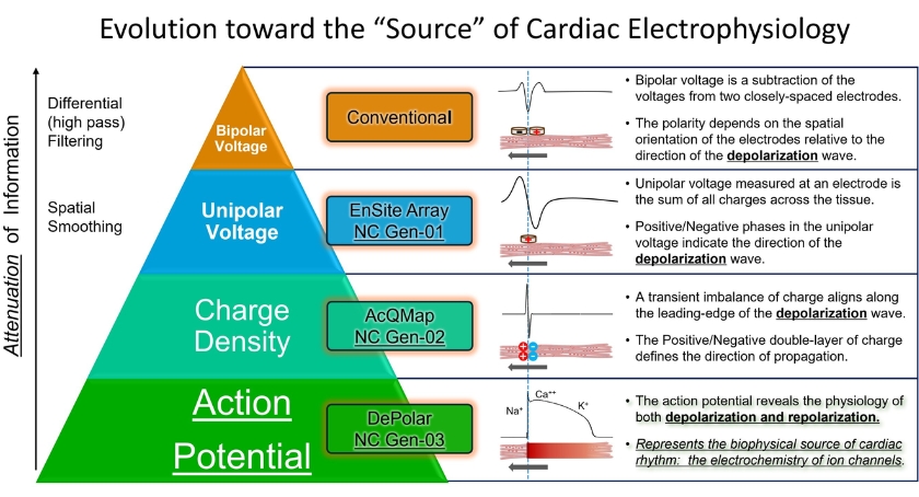 AcQMap is a second-gen NCM platform that advanced beyond first-gen voltage-to-voltage mapping—pioneered by Endocardial Solutions, now part of Abbott—and provided spatial resolution and accuracy using voltage-to-charge-density mapping.