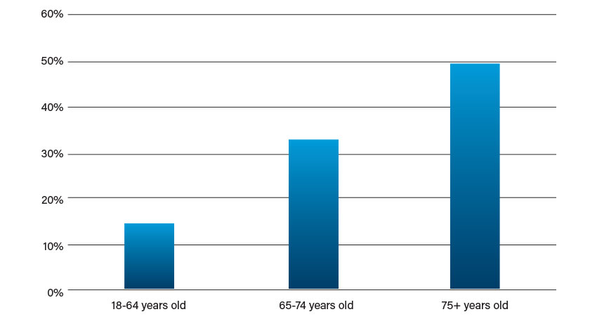Approximately 15% of American adults over the age of 18 state they have some trouble hearing, and about one-third of the people in the U.S. between the ages of 65 and 74 have hearing loss. Nearly half of those greater than 75 years old have difficulty hearing (Table 1).1