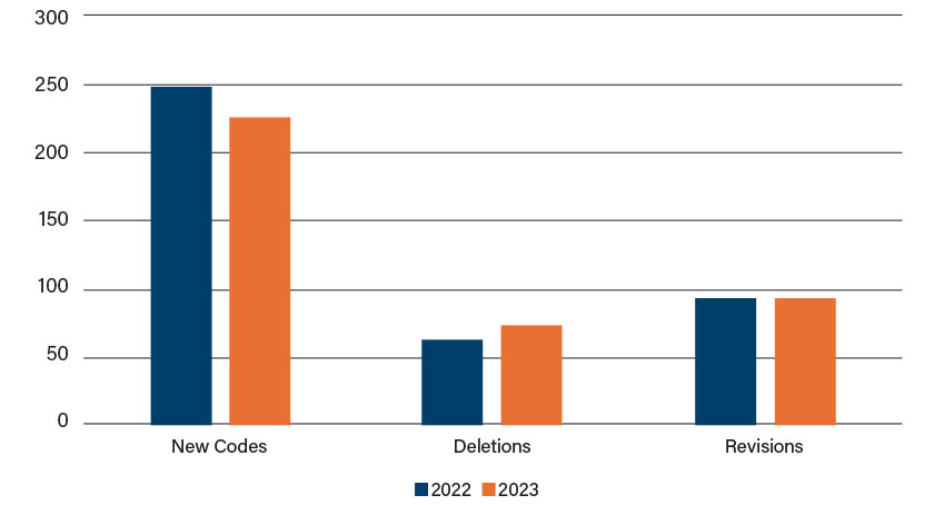 Table 1: AMA changes in CPT code sets in 2022 and 2023.1,2