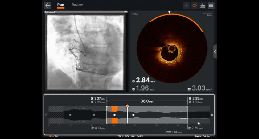 What makes OCT particularly valuable in today’s cath labs is its compatibility with AI-enabled tools. By layering artificial intelligence over imaging data, physicians can receive actionable insights in real time, such as highlighting plaque characteristics, guiding device sizing, and verifying stent placement.