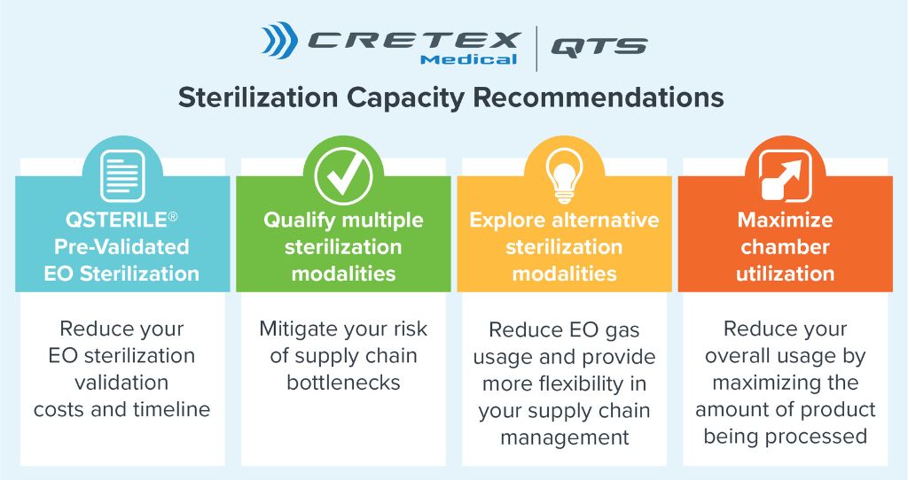 Srun: One option we’ve found to be very helpful for our customers is QSTERILE®—our proprietary pre-validated EO cycle. While the traditional half-cycle overkill approach has historically often been used with a high concentration EO cycle and has been popular due to its high validation success rate, the high volume of EO used can be problematic with regard to emissions. QSTERILE, on the other hand, reduces EO emissions by using the cycle calculation approach combined with a low concentration EO cycle. That also helps to minimize cycle times, meaning less stress on EO facility capacity, all while ensuring a safe and sterilized product.