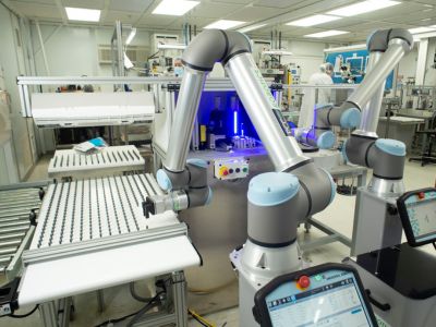 Burn: MRPC has been incorporating automation into our medical manufacturing process for a number of years, and we plan to continue. For low volume/high mix products, MRPC has deployed small, modular, flexible, and re-deployable automation. For this reason, we deployed collaborative robots (co-bots), which have smaller footprints and can safely function alongside the workforce. For high volume/low mix products, automation solutions can be more complex. As such, we have deployed machine-mounted cartesian robotics and customized end-of-arm-tooling (EOAT) to perform the function of part extraction from molding processes, to perform some level of secondary operations, and to hand-off parts to the next process in the cell.