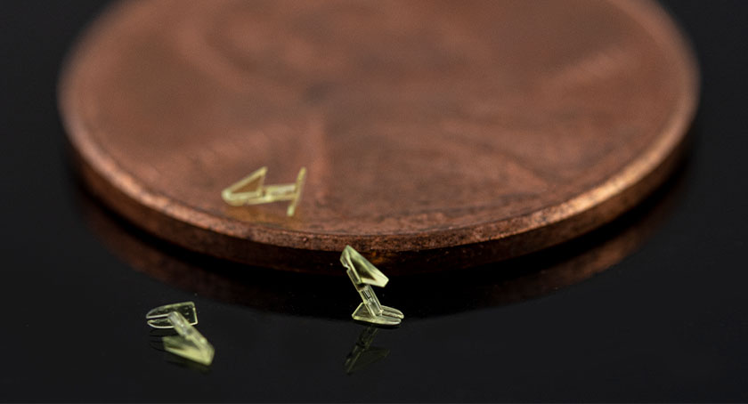 AM machines keep getting better, with tighter optics, improved motion systems, and smarter process controls. At the micro scale, projection micro stereolithography (PµSL) makes features with tolerances that were previously “unmoldable” or “unmachinable,” while keeping builds stable enough for small-batch production. PµSL technology prints small parts rapidly, in biomedical plastics, with 2.0-µm resolution and ±10-µm accuracy at scale. The process also reduces the number of assembly steps required and supports product designs that speed assembly. Products made with PµSL include endoscopes, cardiovascular stents, blood heat exchangers, and lab-on-a-chip devices.