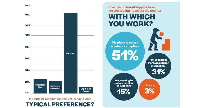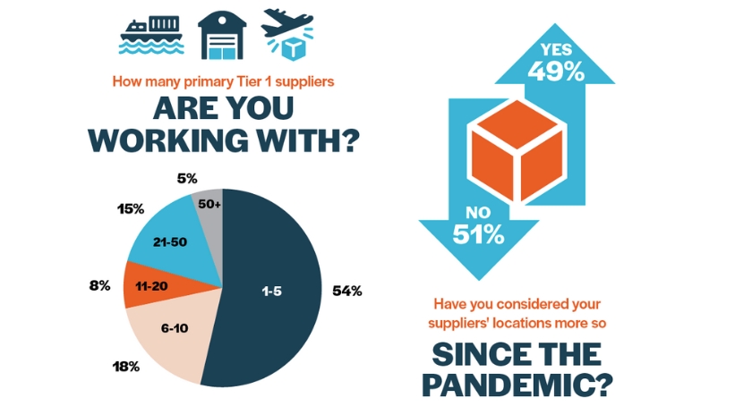 About half of the survey respondents indicated they had no plans to adjust their number of suppliers. However, the remaining half said they either plan to increase or reduce their number of suppliers. Many respondents said they wished to do this to pursue lower costs and shorter delivery times.